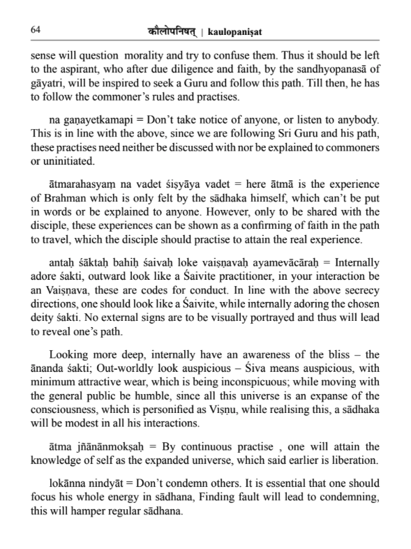 Upanisad, the esoteric wisdom studied under the lotus feet of the Guru, removes the misconceptions of the sadhaka about his nature and reminds him of his true Self. Amongst the many upaniṣad texts pertaining to the Kaula sampradaya, the principal ones are presented here with an exposition which only Divine Mother can impart. The explanatory material unravels the many secrets of the mantra märga. By traversing on the path shown here, a sādhaka is sure to propel himself into the highest aim of his existence.